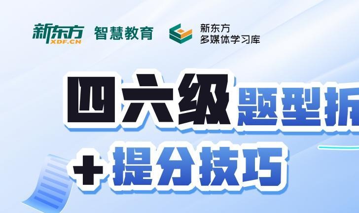 为助力广大考生高效备考大学英语四六级考试,新东方多媒体学习库特别推出“四六级题型拆解+提分技巧”线上直播。本次直播将深度剖析近年考情,系统梳理各大题型核心难点,并结合解题技巧与听...